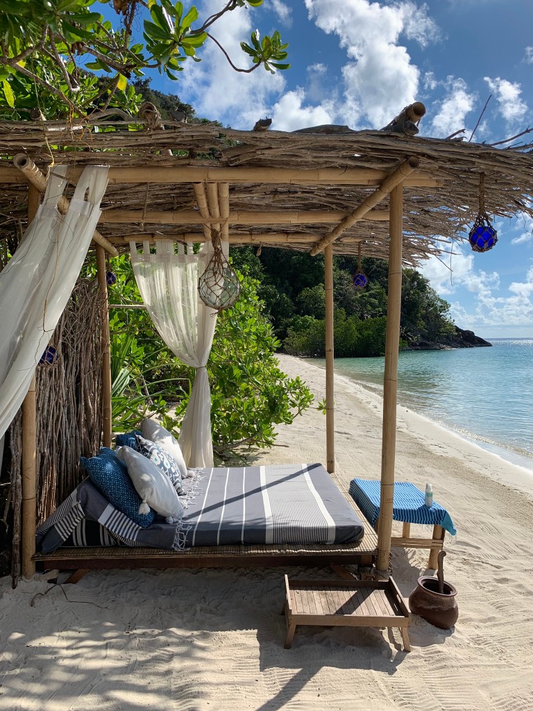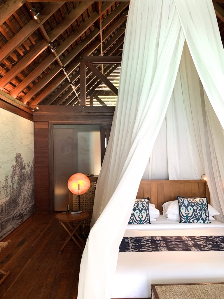 I was curious to see just how luxe these castaway tents would be and I wasn’t disappointed. I was allocated a beach suite which I thought was perfection. These spacious bamboo structures equiped with open sides that you can close down electronically at night to seal yourself away from the mozzies are genius and yes … it is air-conditioned.